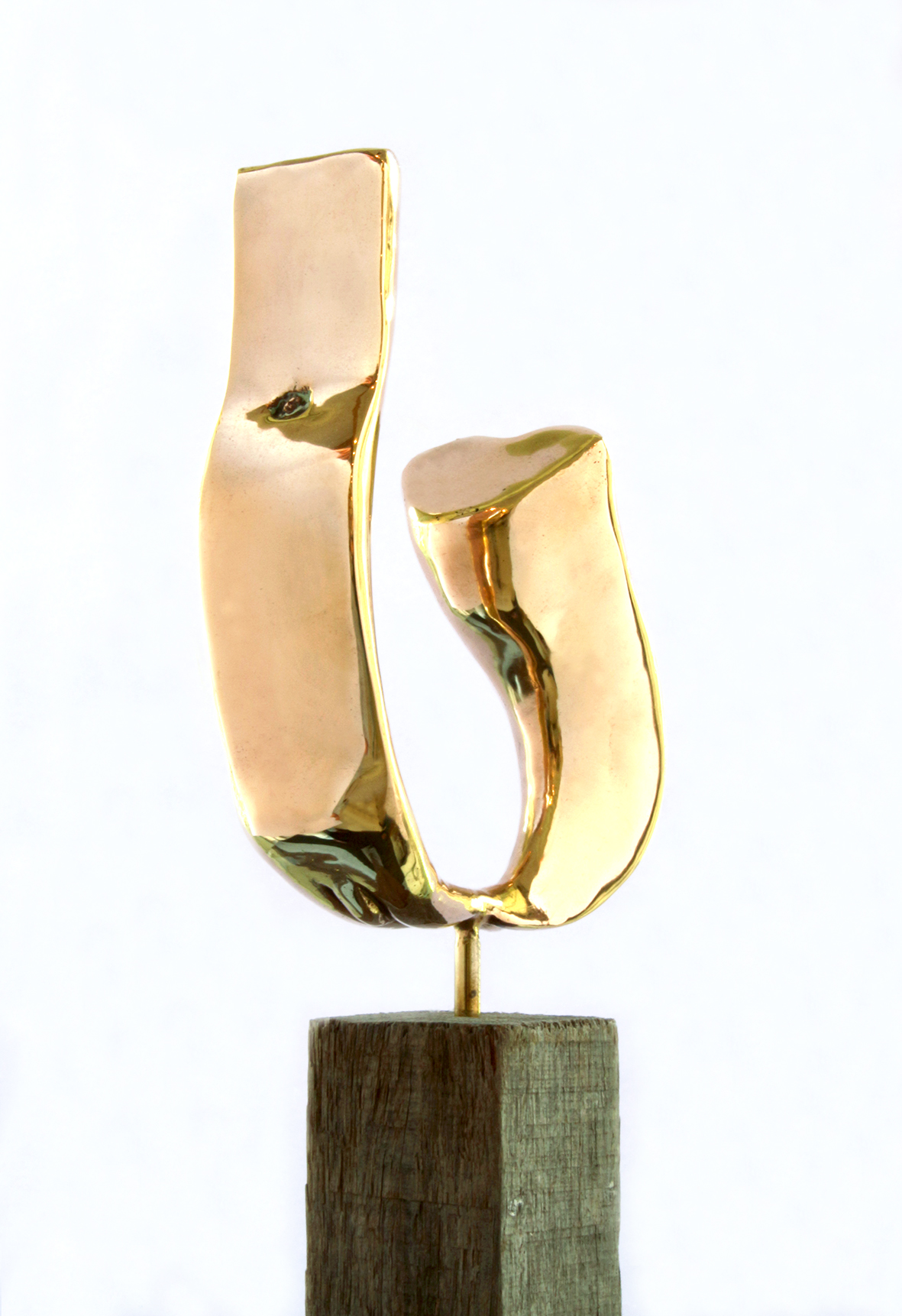 Een gestileerde sagittale doorsnede. Het is mijn eerste beeld dat is gepolijst ipv gepatineerd. Om het zo glad te krijgen was gebruik van een tussenmal en een gipsgietsel noodzakelijk. Het doet een beroep op het voorstellingsvermogen van de toeschouwer.